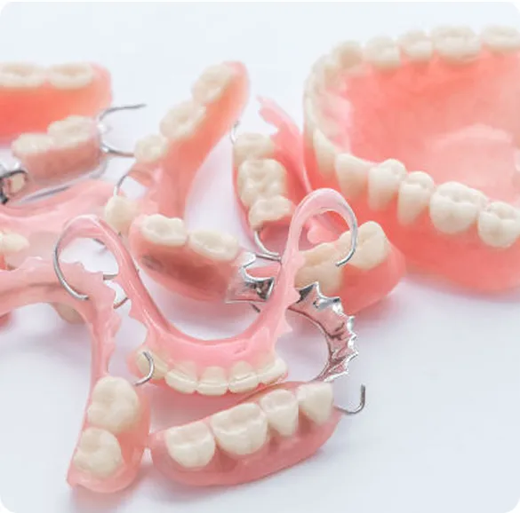 Стоит учесть, что крючки изготавливаются из того же материала, что и основная часть. То есть если они белые, то и основание протеза также будет белым. Такой вариант подходит для протезирования жевательных зубов с размещением крючков на переднем ряду.
